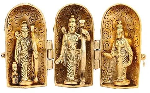 Sanskriti presents a unique and rare piece of art. The item is made up of white metal and is oxidized with golden color to make it antique. This statue of Shri Ram, Sita, Laxman and Hanuman will enhance good luck of your home, office etc. This item is made by our artisans in Jaipur which gives it a royal and traditional look. The piece will remain like this only and will retain its color as it is already oxidized. The idol consists of Shri Ram, Sita, Laxman, and Hanuman. It is one of the best gifting material for any purpose.It can be used as home decoration, in pooja room, in office, also it can be used as corporate and wedding gifting purpose. There might be some difference in color and shade of the item due to photography light and monitor resolution. Also, there might be some changes in the product as the items are handmade and there might be little change.